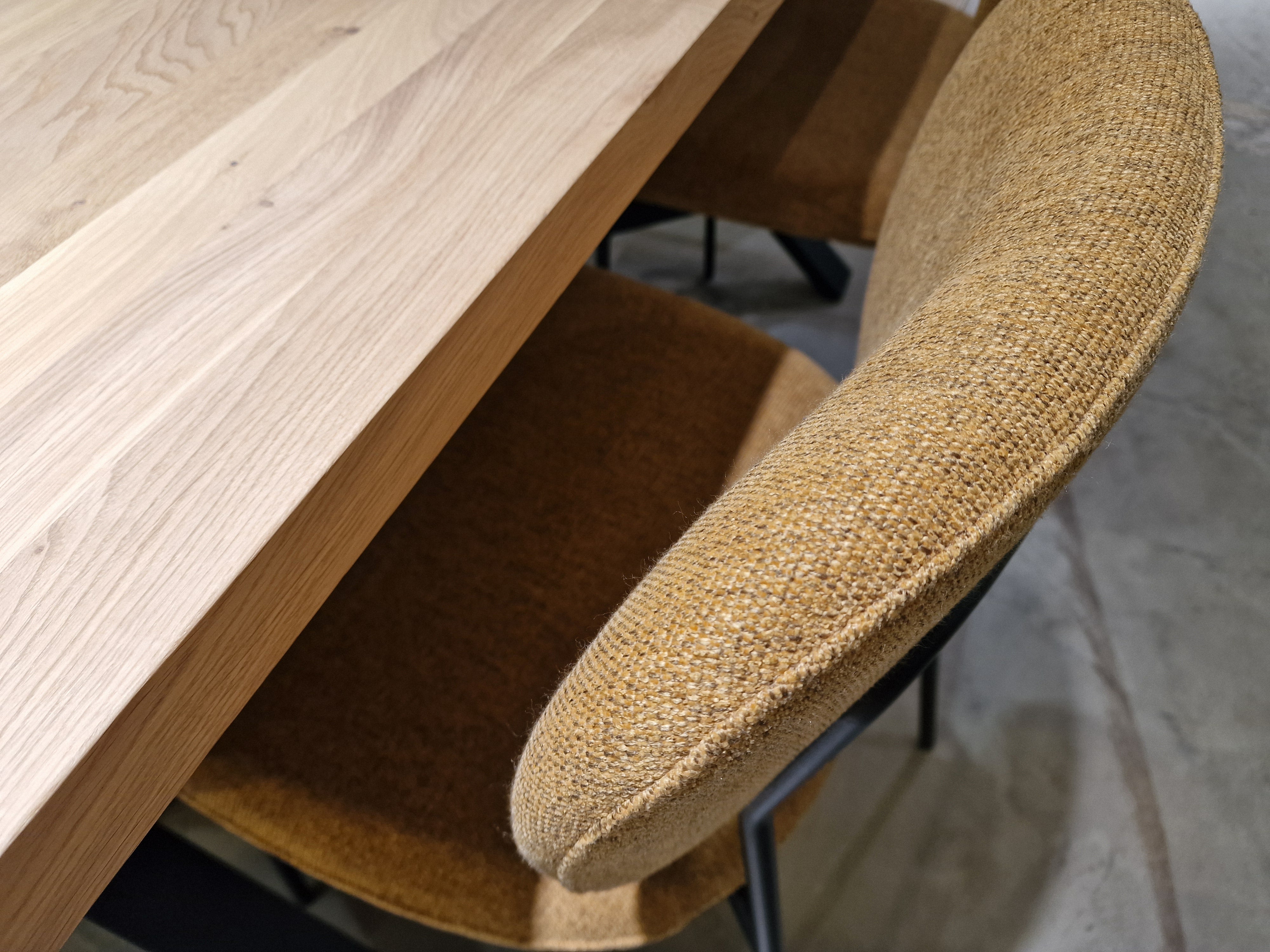 Eetkamerstoel Flow - Stof Oker SR - Zwarte Poten Metaal