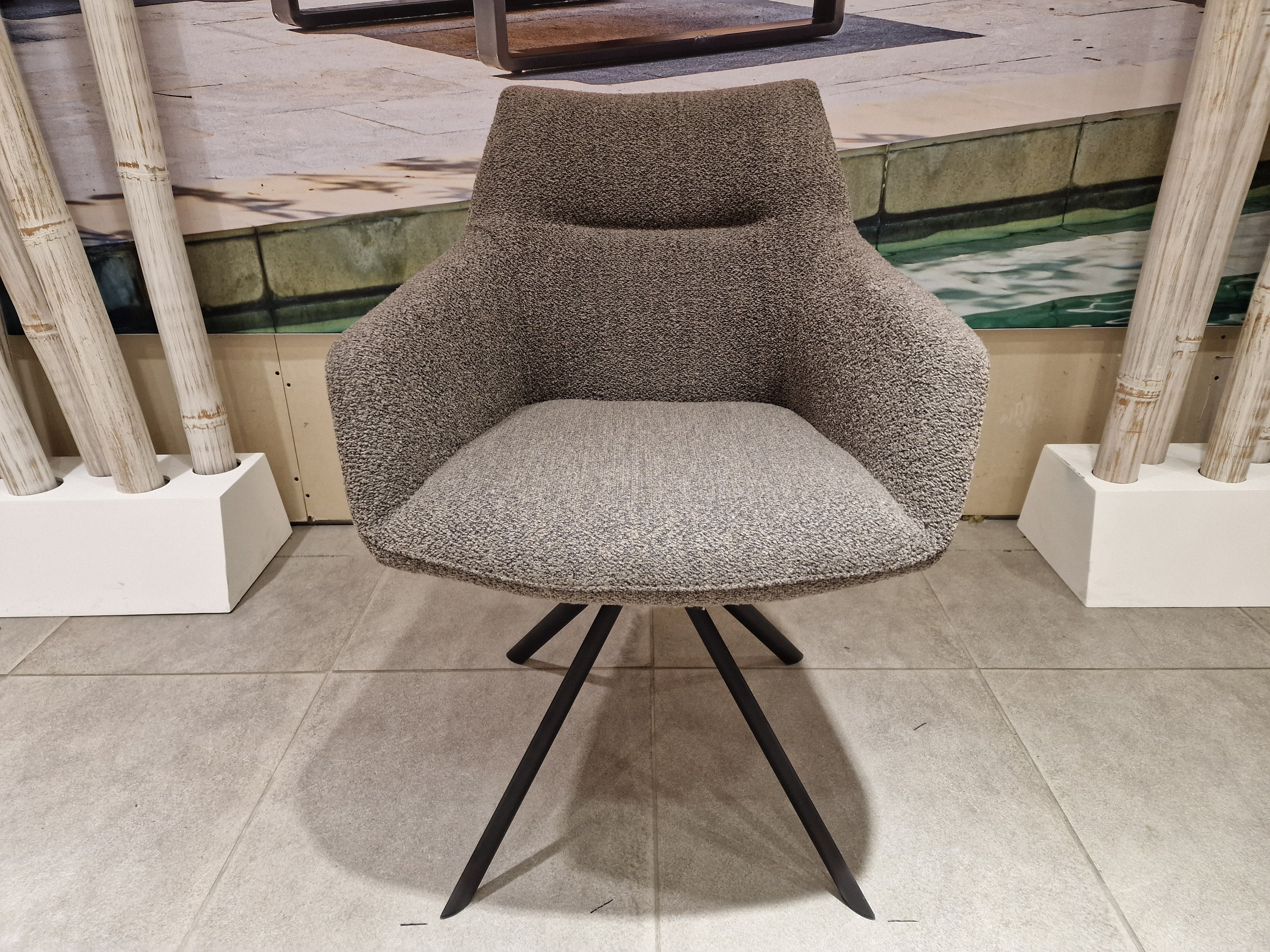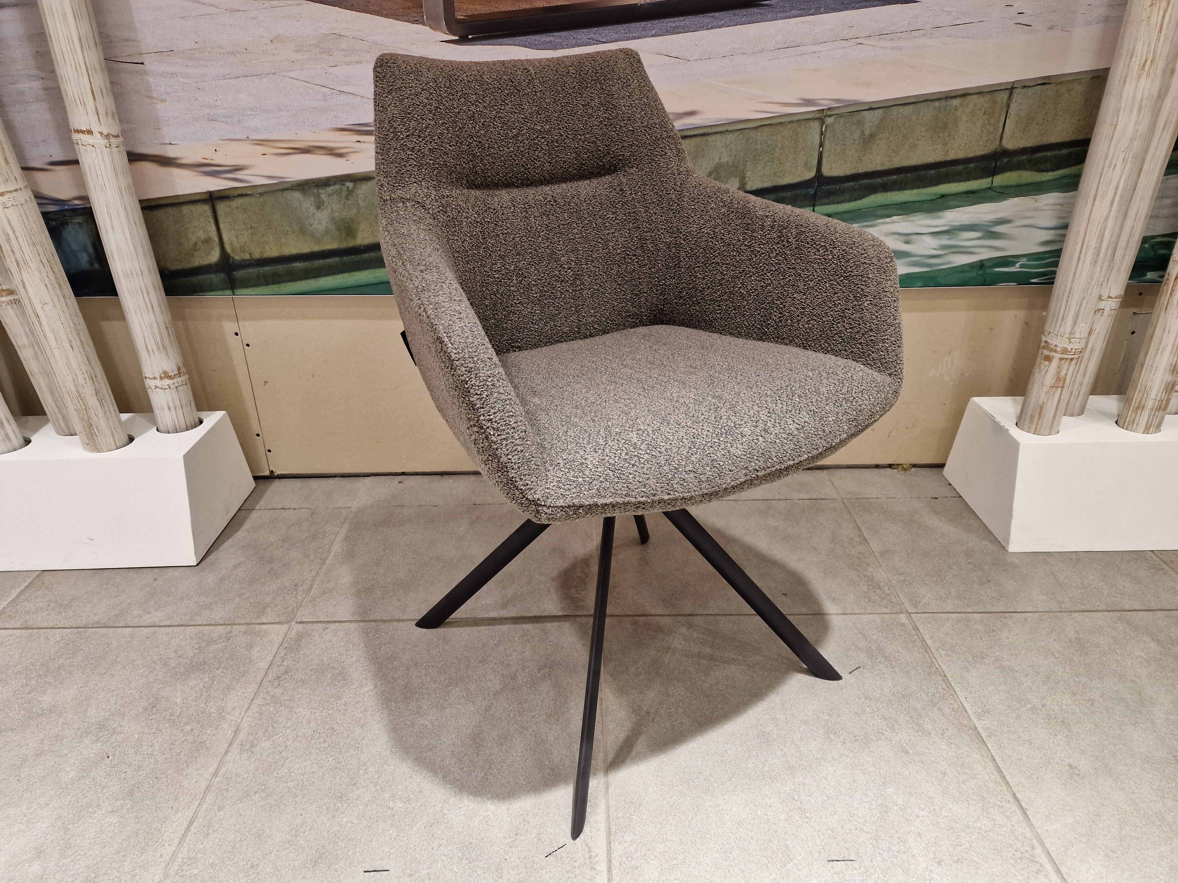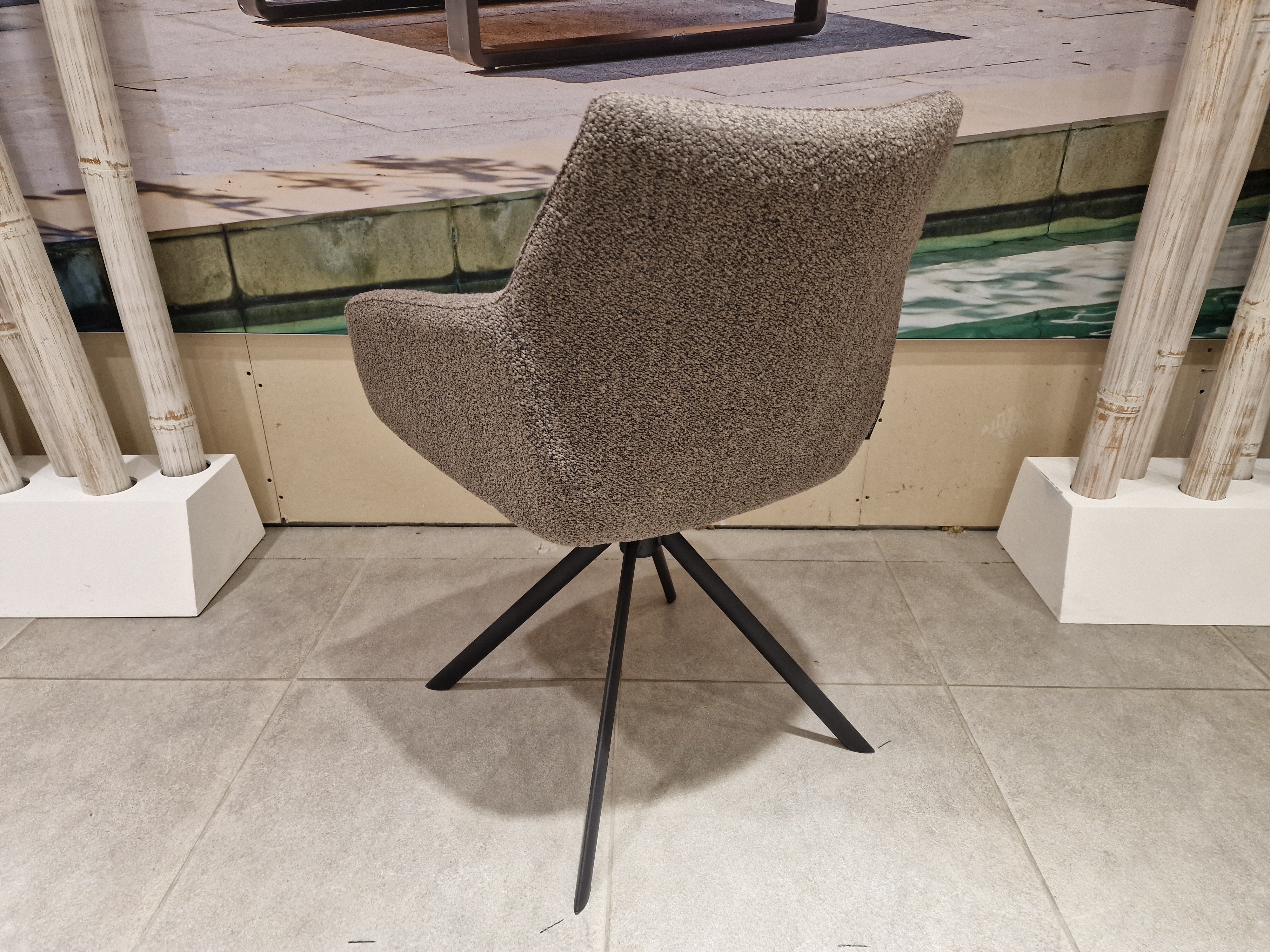Eetkamerstoel Kinto op Draaipoot - Stof Alpine Brown - Zwarte Poten Metaal